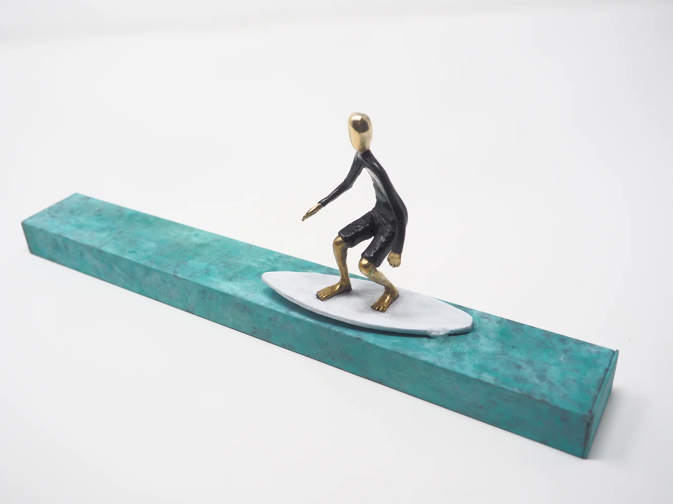 I develop theses creations on both, full bronze sculptures or a hang on the wall iron and bronze artworks. For the hang on the wall sculptures, I play with the shape of the iron that provides a context to the bronze figure. I also create hang in the wall sculptures based on iron bars with a more minimal appearance, this allows me to play with the space in the wall in order to provide a context that gives more relevance to the story.